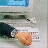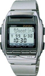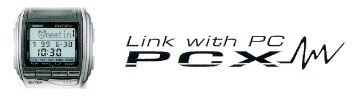 | Meet PCX - the futuristic wrist-worn data terminal that expands your data network to wherever your business takes you! A build-in infrared port lets you send data to and receive data from your computer. This means you can download personal information management (PIM) data and network data from a desktop computer and take it along with you wherever you go. You can even exchange schedule, memo, and owner data (owner name address, phone number, etc.) with another PCX watch quickly and easily. A 27-city World Time tells you the current time virtually anywhere around the globe. |
